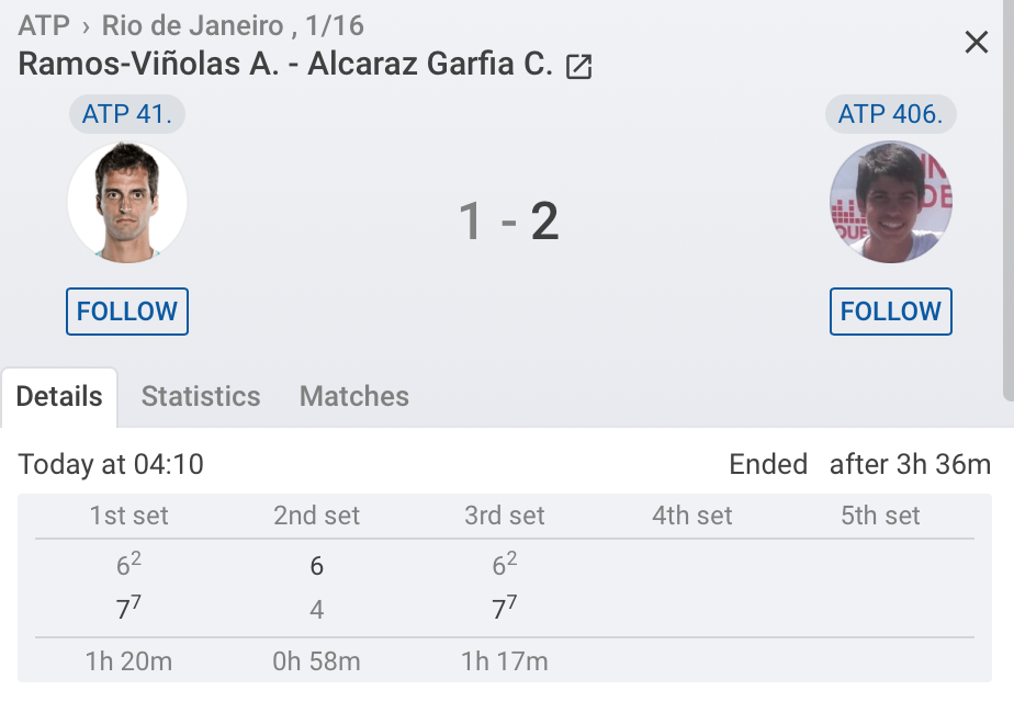 Zverevin 17v kauden 2014 päätösranking ATP136 selkeästi vaarassa rikkoontua tänä vuonna Alcarazin osalta.