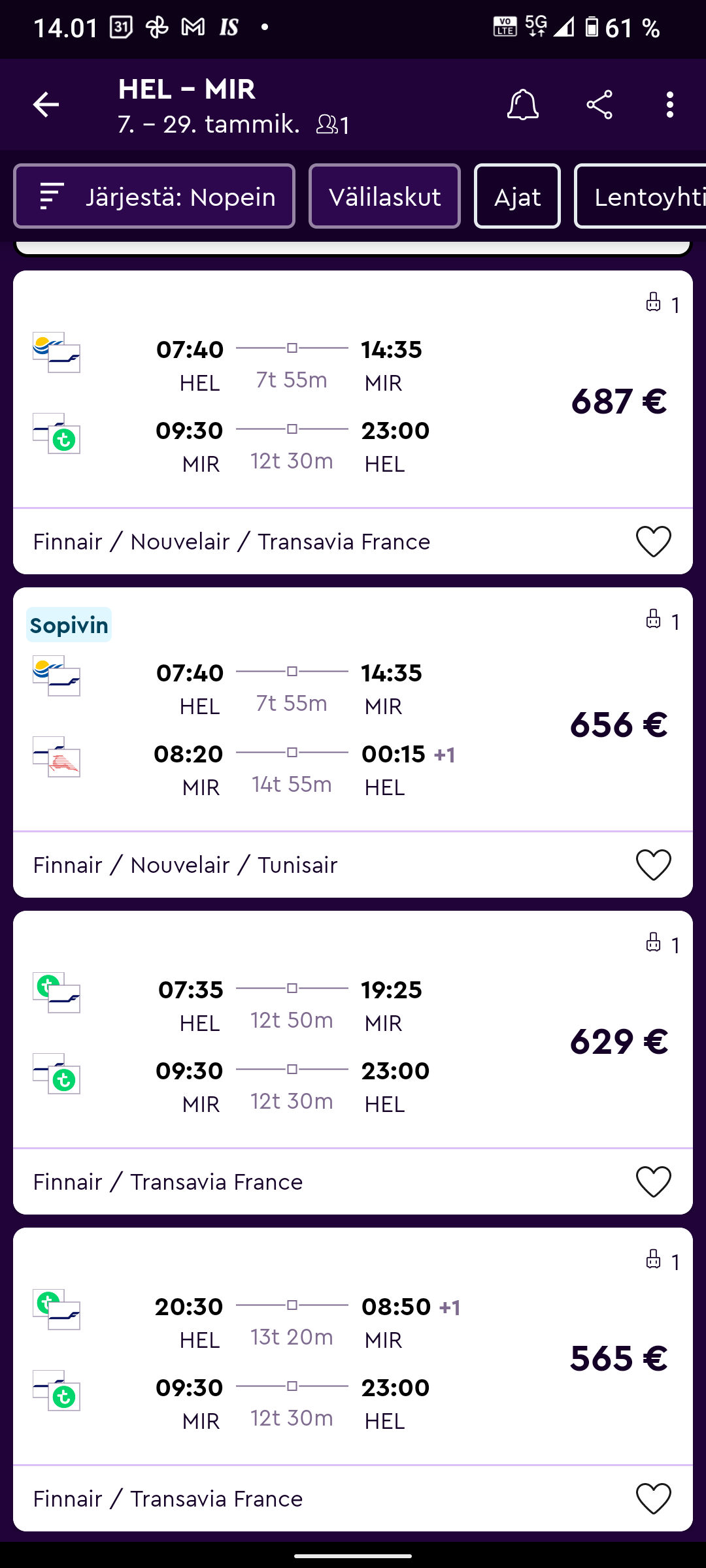 Jotenkin tässä keskustelu on nyt ajautunut tosi nyansseihin. Tuo 27 tunnin oli nyt tarkoituksellinen kirsikanpominta taas mahdollisimman huonosta vaihtoehdosta. Siinä aamulla vielä nähdyssä halvimmassakaan hinnassa ei menomatkalla ollut noin pitkää odotusta ja sekin siis oli vain yksi nopea kokeilu yksillä päivillä viime hetken lennoille.