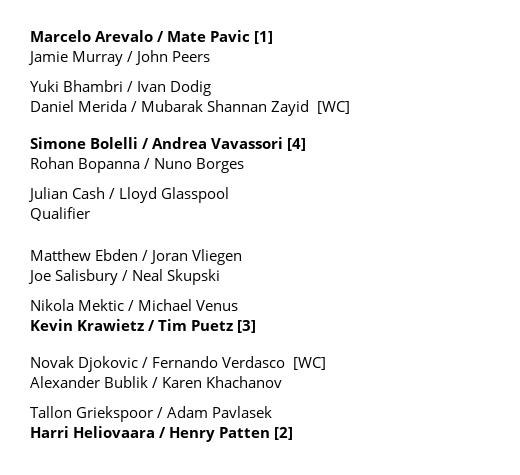 Heliövaara/Patten-Griekspoor/Pavlasek huomenna maanantaina klo 13:30.