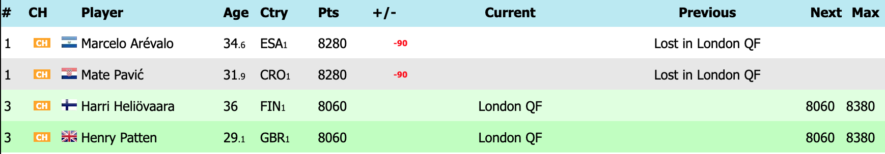 Arevalo/Pavicilla tippuu vielä Eastbournen jälkeisellä listalla pisteet -45p ( jos eivät ilmesty villillä kortilla), ja ovat
