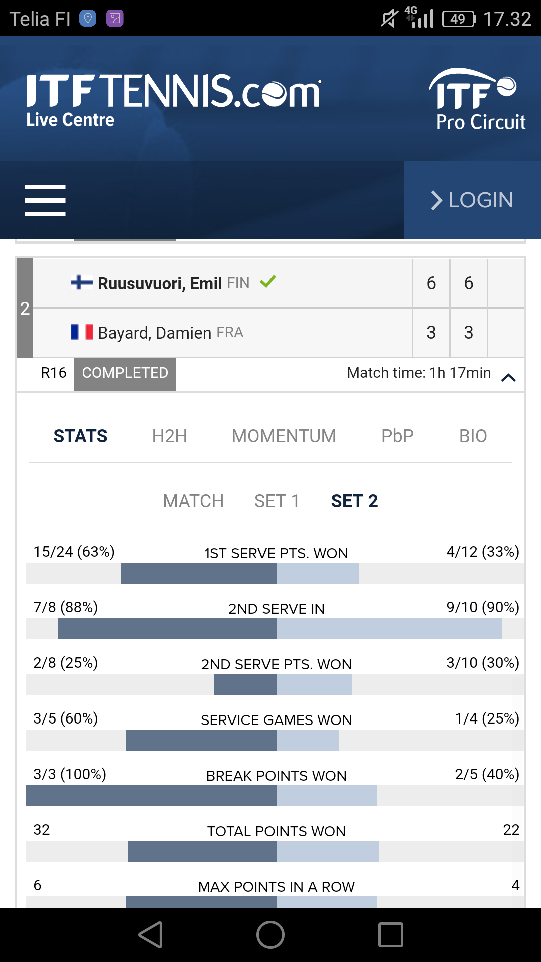 Mitenkähän pitkälle Harri meinaa nyt kaksinpeliä sitten pelata kun se kulkee näin hyvin? Aikaisempi kaksariura loppui ylikuormitukseen sekä fyysisesti että ilmeisesti myös henkisesti, joten jossain vaiheessa pitää varmaan vähentää tätä. Jos siis meinaa neluriuraan panostaa täysillä. Toki futures-tasolla joutaa ja jaksaa näitä matseja vielä pelailla, mutta jo haastajatasolla voi olla parempi keskittyä siihen päälajiin.