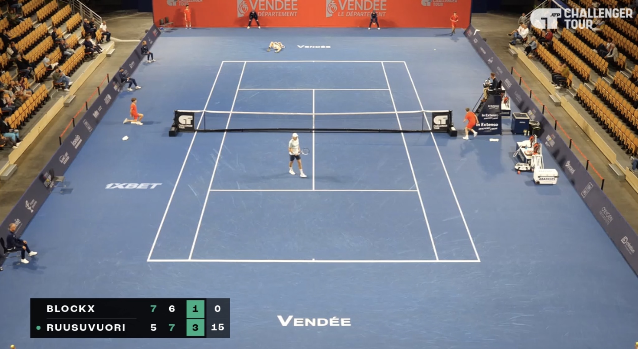 Hienoa peliä molemmilta. Ainoa selkeä ero on syötönpalautukset. Emil ei osaa lukea Blockxin syöttöä kun taas Blockx palauttaa kaikki Emilin ykkösetkin. Vaikeata breikata, kun vastustaja saa pari ilmaista pistettä per syöttövuoro.