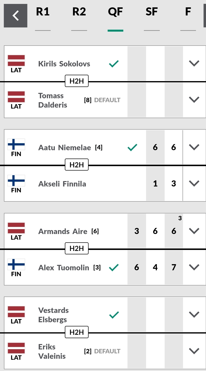 Aizkrauklen ITF J30 on kvartseista alkaen ollut Latvia-Suomi -maaottelu ja kummaltakin nyt kaksi välieriin. Hyvää tulosta meidän nuoriltamme. Aatu hakee jo kolmatta turnausvoittoaan, mikä olisi huikea saavutus 14-vuotiaalta.